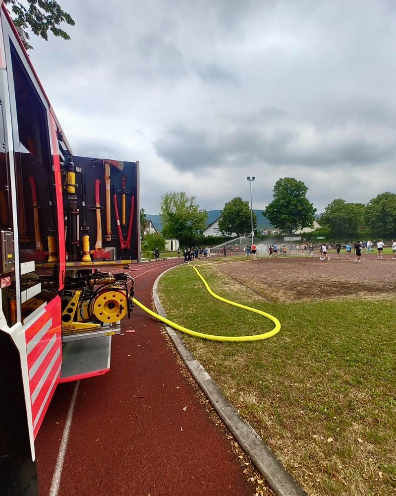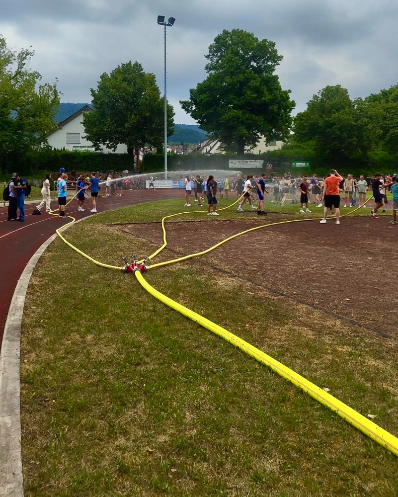 Aufgrund der anhaltenden hohen Temperaturen wurden wir seitens der Gemeinde/Schule angefragt, ob wir bei den Bundesjugendspielen unserer Schillerschule für die Klassen 6-9 für Abkühlung sorgen könnten.